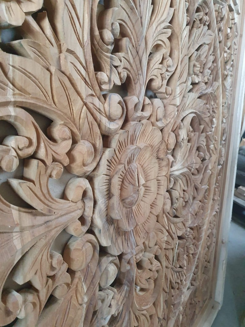 Belle décoration murale mandala sculptée à la main dans du bois de teck.
